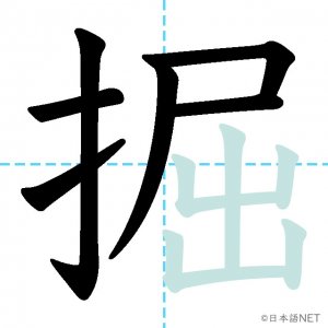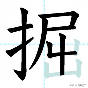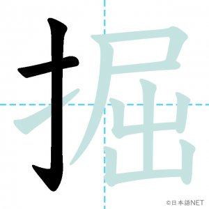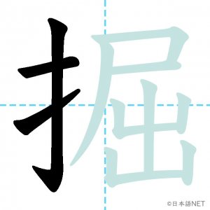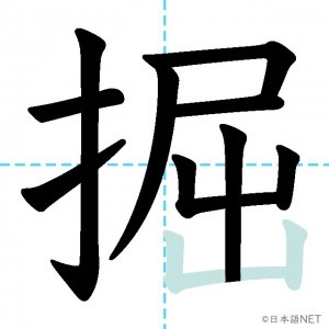N2 漢字漢字【JLPT N2漢字】「掘」の意味・読み方・書き順 2021年4月14日 2021年4月14日 Facebook postはてブLINEPocketFeedlyfa-exclamation-triangle記事内に商品プロモーションが含まれる場合があります目次1 「掘」の漢字について2 「掘」の書き順3 「掘」を含む言葉4 関連書籍「掘」の漢字について読み方音読みくつ訓読みほ-る意味to dig部首手(扌龵)画数11JLPTレベルN2 「掘」の書き順1画目2画目3画目4画目5画目6画目7画目8画目9画目10画目11画目「掘」を含む言葉掘る(ほる)発掘(はっくつ)採掘(さいくつ)掘り出し物(ほりだしもの)関連書籍 日本語総まとめ N2 漢字 [英語・ベトナム語版] Nihongo Soumatome N2 Kanji (English/Vietnamese Edition) Amazon 楽天市場 Yahooショッピング 新完全マスター漢字 日本語能力試験N2 Amazon 楽天市場 Yahooショッピング 日本語を学ぶ外国人のための これで覚える! 漢字字典2500ナツメ社 Amazon 楽天市場 Yahooショッピング Facebook postはてブLINEPocketFeedly