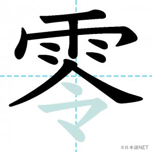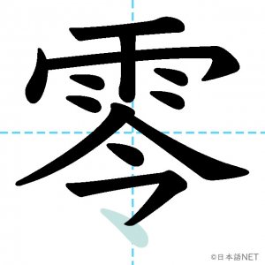 N2 漢字漢字【JLPT N2漢字】「零」の意味・読み方・書き順 2021年4月15日 2021年4月15日 Facebook postはてブLINEPocketFeedlyfa-exclamation-triangle記事内に商品プロモーションが含まれる場合があります目次1 「零」の漢字について2 「零」の書き順3 「零」を含む言葉4 関連書籍「零」の漢字について読み方音読みれい訓読み-意味zero部首雨画数13JLPTレベルN2 「零」の書き順1画目2画目3画目4画目5画目6画目7画目8画目9画目10画目11画目12画目13画目「零」を含む言葉零(れい)零点(れいてん)零度(れいど)零下(れいか)零細(れいさい)関連書籍 日本語総まとめ N2 漢字 [英語・ベトナム語版] Nihongo Soumatome N2 Kanji (English/Vietnamese Edition) Amazon 楽天市場 Yahooショッピング 新完全マスター漢字 日本語能力試験N2 Amazon 楽天市場 Yahooショッピング 日本語を学ぶ外国人のための これで覚える! 漢字字典2500ナツメ社 Amazon 楽天市場 Yahooショッピング Facebook postはてブLINEPocketFeedly