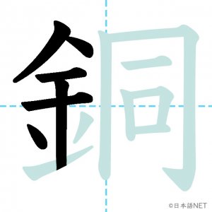 N2 漢字漢字【JLPT N2漢字】「銅」の意味・読み方・書き順 2021年4月19日 2021年4月19日 Facebook postはてブLINEPocketFeedlyfa-exclamation-triangle記事内に商品プロモーションが含まれる場合があります目次1 「銅」の漢字について2 「銅」の書き順3 「銅」を含む言葉4 関連書籍「銅」の漢字について読み方音読みどう訓読み-意味copper部首金画数14JLPTレベルN2 「銅」の書き順1画目2画目3画目4画目5画目6画目7画目8画目9画目10画目11画目12画目13画目14画目「銅」を含む言葉銅(どう)分銅(ぶんどう)銅貨(どうか)銅像(どうぞう)関連書籍 日本語総まとめ N2 漢字 [英語・ベトナム語版] Nihongo Soumatome N2 Kanji (English/Vietnamese Edition) Amazon 楽天市場 Yahooショッピング 新完全マスター漢字 日本語能力試験N2 Amazon 楽天市場 Yahooショッピング 日本語を学ぶ外国人のための これで覚える! 漢字字典2500ナツメ社 Amazon 楽天市場 Yahooショッピング Facebook postはてブLINEPocketFeedly