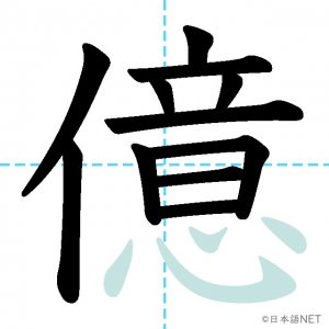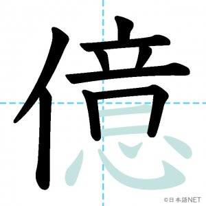 N2 漢字漢字【JLPT N2漢字】「億」の意味・読み方・書き順 2021年4月21日 2021年4月21日 Facebook postはてブLINEPocketFeedlyfa-exclamation-triangle記事内に商品プロモーションが含まれる場合があります目次1 「億」の漢字について2 「億」の書き順3 「億」を含む言葉4 関連書籍「億」の漢字について読み方音読みおく訓読み-意味hundred million部首人(亻)画数15JLPTレベルN2 「億」の書き順1画目2画目3画目4画目5画目6画目7画目8画目9画目10画目11画目12画目13画目14画目15画目「億」を含む言葉億(おく)億万長者(おくまんちょうじゃ)億劫(おっくう)関連書籍 日本語総まとめ N2 漢字 [英語・ベトナム語版] Nihongo Soumatome N2 Kanji (English/Vietnamese Edition) Amazon 楽天市場 Yahooショッピング 新完全マスター漢字 日本語能力試験N2 Amazon 楽天市場 Yahooショッピング 日本語を学ぶ外国人のための これで覚える! 漢字字典2500ナツメ社 Amazon 楽天市場 Yahooショッピング Facebook postはてブLINEPocketFeedly