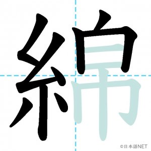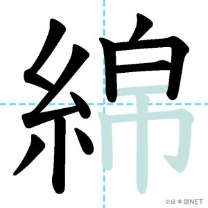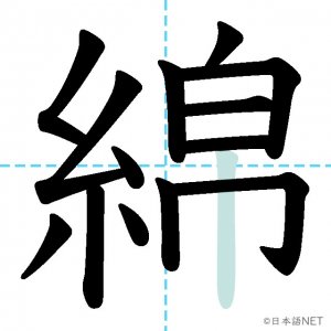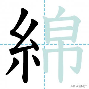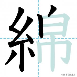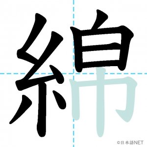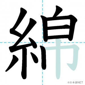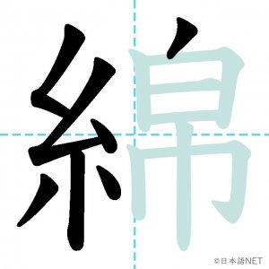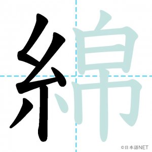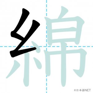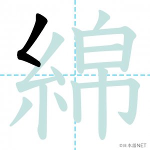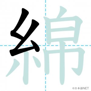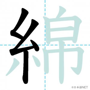 N2 漢字漢字【JLPT N2漢字】「綿」の意味・読み方・書き順 2021年4月21日 2021年4月21日 Facebook postはてブLINEPocketFeedlyfa-exclamation-triangle記事内に商品プロモーションが含まれる場合があります目次1 「綿」の漢字について2 「綿」の書き順3 「綿」を含む言葉4 関連書籍「綿」の漢字について読み方音読みめん訓読みわた意味cotton部首糸画数14JLPTレベルN2 「綿」の書き順1画目2画目3画目4画目5画目6画目7画目8画目9画目10画目11画目12画目13画目14画目「綿」を含む言葉綿(わた)綿飴(わたあめ)綿菓子(わたがし)木綿(もめん)綿花(めんか)綿密(めんみつ)関連書籍 日本語総まとめ N2 漢字 [英語・ベトナム語版] Nihongo Soumatome N2 Kanji (English/Vietnamese Edition) Amazon 楽天市場 Yahooショッピング 新完全マスター漢字 日本語能力試験N2 Amazon 楽天市場 Yahooショッピング 日本語を学ぶ外国人のための これで覚える! 漢字字典2500ナツメ社 Amazon 楽天市場 Yahooショッピング Facebook postはてブLINEPocketFeedly