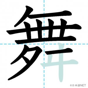 N2 漢字漢字【JLPT N2漢字】「舞」の意味・読み方・書き順 2021年4月25日 2021年4月25日 Facebook postはてブLINEPocketFeedlyfa-exclamation-triangle記事内に商品プロモーションが含まれる場合があります目次1 「舞」の漢字について2 「舞」の書き順3 「舞」を含む言葉4 関連書籍「舞」の漢字について読み方音読みぶ訓読みま-う まい意味dance部首舛画数15JLPTレベルN2 「舞」の書き順1画目2画目3画目4画目5画目6画目7画目8画目9画目10画目11画目12画目13画目14画目15画目「舞」を含む言葉お見舞い(おみまい)舞台(ぶたい)歌舞伎(かぶき)舞う(まう)振舞う(ふるまう)舞踊(ぶよう)鼓舞(こぶ)乱舞(らんぶ)関連書籍 日本語総まとめ N2 漢字 [英語・ベトナム語版] Nihongo Soumatome N2 Kanji (English/Vietnamese Edition) Amazon 楽天市場 Yahooショッピング 新完全マスター漢字 日本語能力試験N2 Amazon 楽天市場 Yahooショッピング 日本語を学ぶ外国人のための これで覚える! 漢字字典2500ナツメ社 Amazon 楽天市場 Yahooショッピング Facebook postはてブLINEPocketFeedly