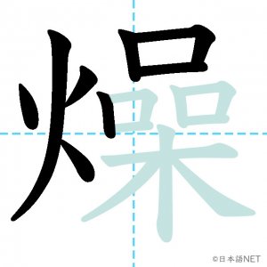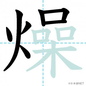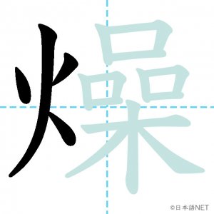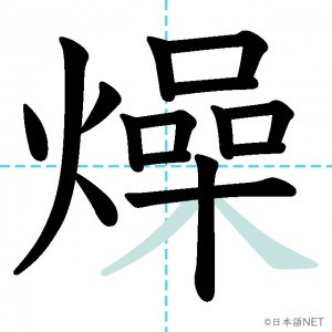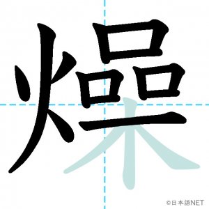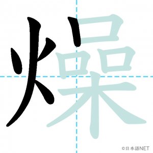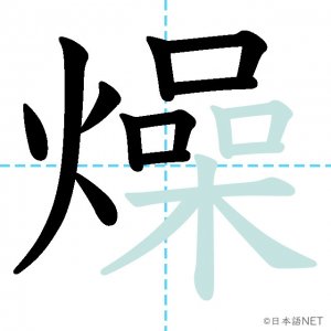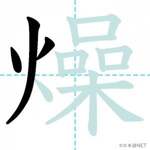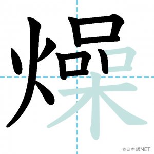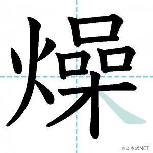 N2 漢字漢字【JLPT N2漢字】「燥」の意味・読み方・書き順 2021年4月28日 2021年4月28日 Facebook postはてブLINEPocketFeedlyfa-exclamation-triangle記事内に商品プロモーションが含まれる場合があります目次1 「燥」の漢字について2 「燥」の書き順3 「燥」を含む言葉4 関連書籍「燥」の漢字について読み方音読みそう訓読み-意味tp parch / dry up部首火(灬)画数17JLPTレベルN2 「燥」の書き順1画目2画目3画目4画目5画目6画目7画目8画目9画目10画目11画目12画目13画目14画目15画目16画目17画目「燥」を含む言葉乾燥(かんそう)焦燥(しょうそう)関連書籍 日本語総まとめ N2 漢字 [英語・ベトナム語版] Nihongo Soumatome N2 Kanji (English/Vietnamese Edition) Amazon 楽天市場 Yahooショッピング 新完全マスター漢字 日本語能力試験N2 Amazon 楽天市場 Yahooショッピング 日本語を学ぶ外国人のための これで覚える! 漢字字典2500ナツメ社 Amazon 楽天市場 Yahooショッピング Facebook postはてブLINEPocketFeedly