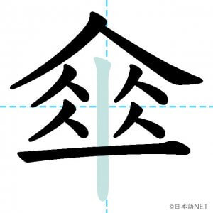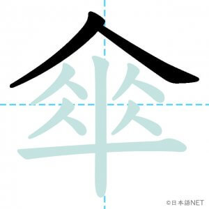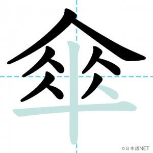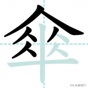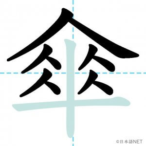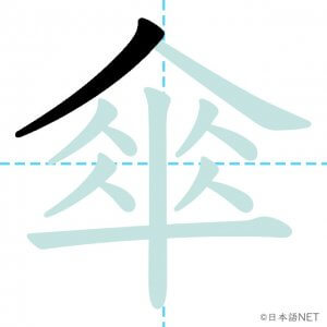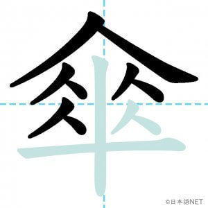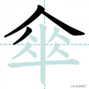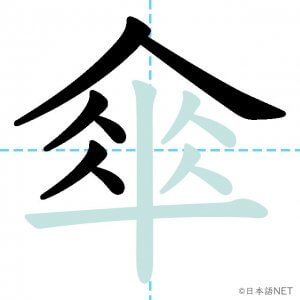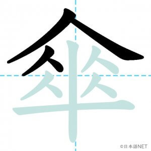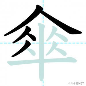N1 漢字漢字【JLPT N1漢字】「傘」の意味・読み方・書き順 2021年5月7日 2021年5月7日 Facebook postはてブLINEPocketFeedlyfa-exclamation-triangle記事内に商品プロモーションが含まれる場合があります目次1 「傘」の漢字について2 「傘」の書き順3 「傘」を含む言葉4 関連書籍「傘」の漢字について読み方音読みさん訓読みかさ意味umbrella部首人(亻)画数12JLPTレベルN1 「傘」の書き順1画目2画目3画目4画目5画目6画目7画目8画目9画目10画目11画目12画目「傘」を含む言葉傘(かさ)日傘(ひがさ)雨傘(あまがさ)傘下(さんか)関連書籍 日本語総まとめ N1 漢字 [英語・ベトナム語版] (「日本語能力試験」対策) Amazon 楽天市場 Yahooショッピング 新完全マスター漢字 日本語能力試験N1 Amazon 楽天市場 Yahooショッピング 日本語を学ぶ外国人のための これで覚える! 漢字字典2500ナツメ社 Amazon 楽天市場 Yahooショッピング Facebook postはてブLINEPocketFeedly