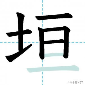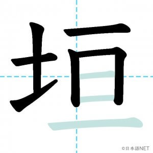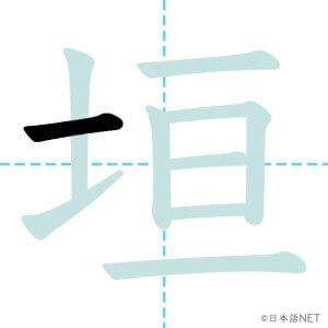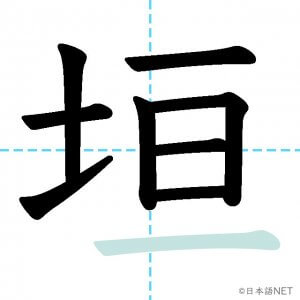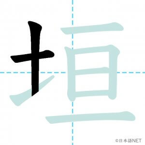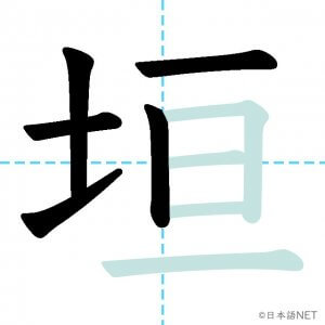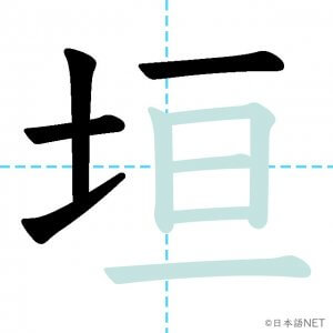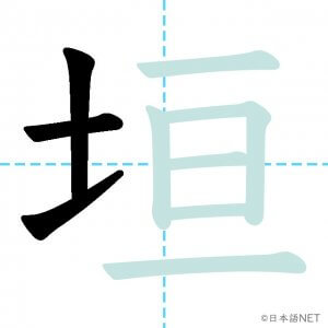 N1 漢字漢字【JLPT N1漢字】「垣」の意味・読み方・書き順 2021年5月8日 2021年5月8日 Facebook postはてブLINEPocketFeedlyfa-exclamation-triangle記事内に商品プロモーションが含まれる場合があります目次1 「垣」の漢字について2 「垣」の書き順3 「垣」を含む言葉4 関連書籍「垣」の漢字について読み方音読み-訓読みかき意味hedge / fence部首土画数9JLPTレベルN1 「垣」の書き順1画目2画目3画目4画目5画目6画目7画目8画目9画目「垣」を含む言葉垣根(かきね)石垣(いしがき)関連書籍 日本語総まとめ N1 漢字 [英語・ベトナム語版] (「日本語能力試験」対策) Amazon 楽天市場 Yahooショッピング 新完全マスター漢字 日本語能力試験N1 Amazon 楽天市場 Yahooショッピング 日本語を学ぶ外国人のための これで覚える! 漢字字典2500ナツメ社 Amazon 楽天市場 Yahooショッピング Facebook postはてブLINEPocketFeedly