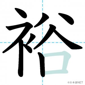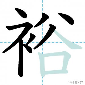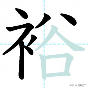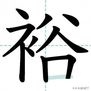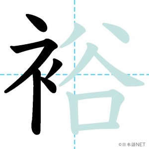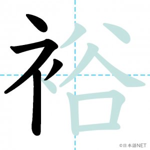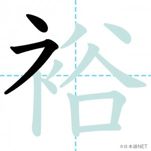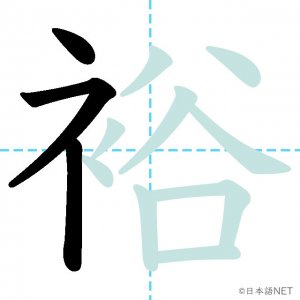 N1 漢字漢字【JLPT N1漢字】「裕」の意味・読み方・書き順 2021年5月12日 2021年5月12日 Facebook postはてブLINEPocketFeedlyfa-exclamation-triangle記事内に商品プロモーションが含まれる場合があります目次1 「裕」の漢字について2 「裕」の書き順3 「裕」を含む言葉4 関連書籍「裕」の漢字について読み方音読みゆう訓読み-意味abundant部首衣(衤)画数12JLPTレベルN1 「裕」の書き順1画目2画目3画目4画目5画目6画目7画目8画目9画目10画目11画目12画目「裕」を含む言葉裕福(ゆうふく)富裕(ふゆう)余裕(よゆう)関連書籍 日本語総まとめ N1 漢字 [英語・ベトナム語版] (「日本語能力試験」対策) Amazon 楽天市場 Yahooショッピング 新完全マスター漢字 日本語能力試験N1 Amazon 楽天市場 Yahooショッピング 日本語を学ぶ外国人のための これで覚える! 漢字字典2500ナツメ社 Amazon 楽天市場 Yahooショッピング Facebook postはてブLINEPocketFeedly