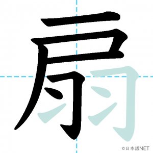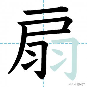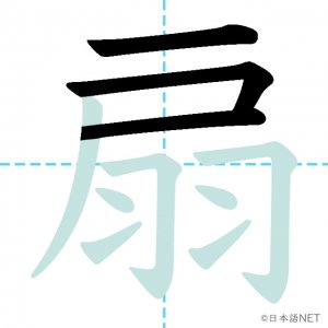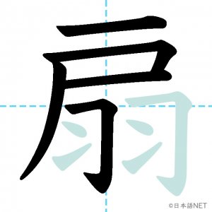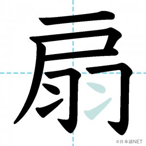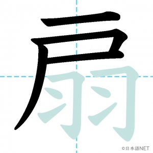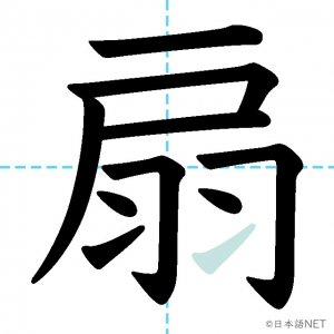 N1 漢字漢字【JLPT N1漢字】「扇」の意味・読み方・書き順 2021年5月14日 2021年5月14日 Facebook postはてブLINEPocketFeedlyfa-exclamation-triangle記事内に商品プロモーションが含まれる場合があります目次1 「扇」の漢字について2 「扇」の書き順3 「扇」を含む言葉4 関連書籍「扇」の漢字について読み方音読みせん訓読みおうぎ意味fan / folding fan部首戶画数10JLPTレベルN1 「扇」の書き順1画目2画目3画目4画目5画目6画目7画目8画目9画目10画目「扇」を含む言葉扇風機(せんぷうき)扇(おうぎ)扇子(せんす)団扇(うちわ)関連書籍 日本語総まとめ N1 漢字 [英語・ベトナム語版] (「日本語能力試験」対策) Amazon 楽天市場 Yahooショッピング 新完全マスター漢字 日本語能力試験N1 Amazon 楽天市場 Yahooショッピング 日本語を学ぶ外国人のための これで覚える! 漢字字典2500ナツメ社 Amazon 楽天市場 Yahooショッピング Facebook postはてブLINEPocketFeedly