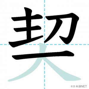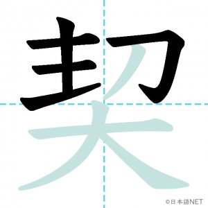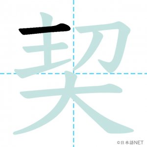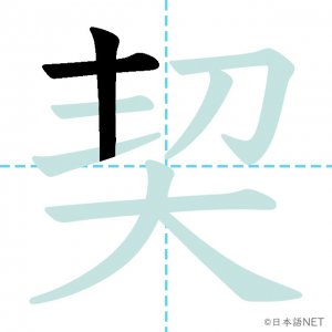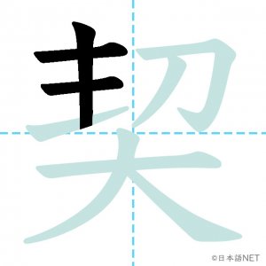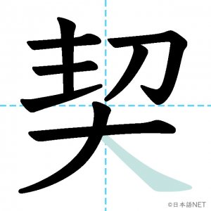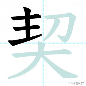 N1 漢字漢字【JLPT N1漢字】「契」の意味・読み方・書き順 2021年5月18日 2021年5月18日 Facebook postはてブLINEPocketFeedlyfa-exclamation-triangle記事内に商品プロモーションが含まれる場合があります目次1 「契」の漢字について2 「契」の書き順3 「契」を含む言葉4 関連書籍「契」の漢字について読み方音読みけい訓読みちぎ-る意味to pledge / to promise,部首大画数9JLPTレベルN1 「契」の書き順1画目2画目3画目4画目5画目6画目7画目8画目9画目¥「契」を含む言葉契約(けいやく)契機(けいき)関連書籍 日本語総まとめ N1 漢字 [英語・ベトナム語版] (「日本語能力試験」対策) Amazon 楽天市場 Yahooショッピング 新完全マスター漢字 日本語能力試験N1 Amazon 楽天市場 Yahooショッピング 日本語を学ぶ外国人のための これで覚える! 漢字字典2500ナツメ社 Amazon 楽天市場 Yahooショッピング Facebook postはてブLINEPocketFeedly