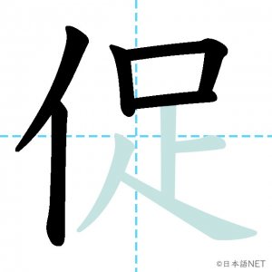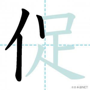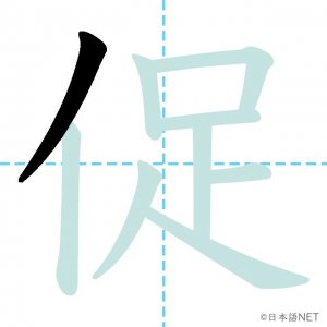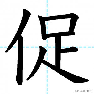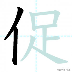 N1 漢字漢字【JLPT N1漢字】「促」の意味・読み方・書き順 2021年5月20日 2021年5月20日 Facebook postはてブLINEPocketFeedlyfa-exclamation-triangle記事内に商品プロモーションが含まれる場合があります目次1 「促」の漢字について2 「促」の書き順3 「促」を含む言葉4 関連書籍「促」の漢字について読み方音読みそく訓読みうなが-す意味to urge / to press / to accelerate部首人(亻)画数9JLPTレベルN1 「促」の書き順1画目2画目3画目4画目5画目6画目7画目8画目9画目「促」を含む言葉促す(うながす)促進(そくしん)催促(さいそく)関連書籍 日本語総まとめ N1 漢字 [英語・ベトナム語版] (「日本語能力試験」対策) Amazon 楽天市場 Yahooショッピング 新完全マスター漢字 日本語能力試験N1 Amazon 楽天市場 Yahooショッピング 日本語を学ぶ外国人のための これで覚える! 漢字字典2500ナツメ社 Amazon 楽天市場 Yahooショッピング Facebook postはてブLINEPocketFeedly