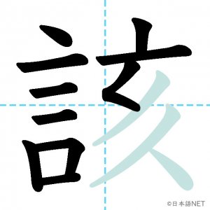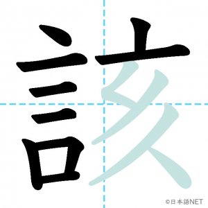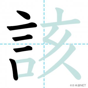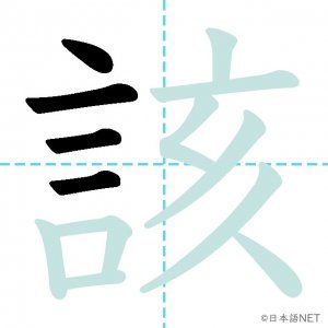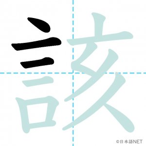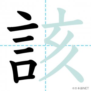 N1 漢字漢字【JLPT N1漢字】「該」の意味・読み方・書き順 2021年5月28日 2021年5月28日 Facebook postはてブLINEPocketFeedlyfa-exclamation-triangle記事内に商品プロモーションが含まれる場合があります目次1 「該」の漢字について2 「該」の書き順3 「該」を含む言葉4 関連書籍「該」の漢字について読み方音読みがい訓読み-意味above-stated / the said部首言画数13JLPTレベルN1 「該」の書き順1画目2画目3画目4画目5画目6画目7画目8画目9画目10画目11画目12画目13画目「該」を含む言葉該当(がいとう)関連書籍 日本語総まとめ N1 漢字 [英語・ベトナム語版] (「日本語能力試験」対策) Amazon 楽天市場 Yahooショッピング 新完全マスター漢字 日本語能力試験N1 Amazon 楽天市場 Yahooショッピング 日本語を学ぶ外国人のための これで覚える! 漢字字典2500ナツメ社 Amazon 楽天市場 Yahooショッピング Facebook postはてブLINEPocketFeedly