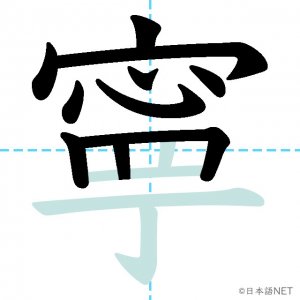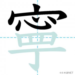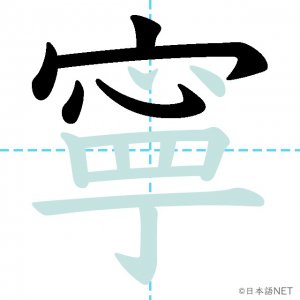 N1 漢字漢字【JLPT N1漢字】「寧」の意味・読み方・書き順 2021年5月28日 2021年5月28日 Facebook postはてブLINEPocketFeedlyfa-exclamation-triangle記事内に商品プロモーションが含まれる場合があります目次1 「寧」の漢字について2 「寧」の書き順3 「寧」を含む言葉4 関連書籍「寧」の漢字について読み方音読みねい訓読みむし-ろ意味rather / polite部首宀画数14JLPTレベルN1 「寧」の書き順1画目2画目3画目4画目5画目6画目7画目8画目9画目10画目11画目12画目13画目14画目「寧」を含む言葉丁寧(ていねい)寧ろ(むしろ)関連書籍 日本語総まとめ N1 漢字 [英語・ベトナム語版] (「日本語能力試験」対策) Amazon 楽天市場 Yahooショッピング 新完全マスター漢字 日本語能力試験N1 Amazon 楽天市場 Yahooショッピング 日本語を学ぶ外国人のための これで覚える! 漢字字典2500ナツメ社 Amazon 楽天市場 Yahooショッピング Facebook postはてブLINEPocketFeedly