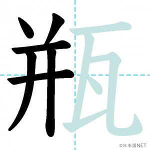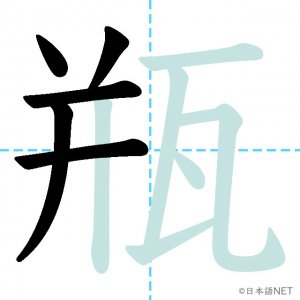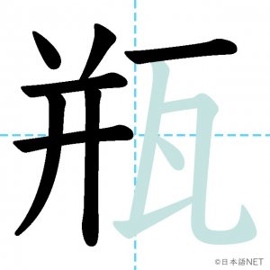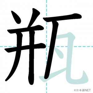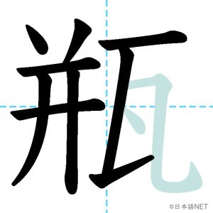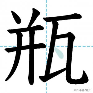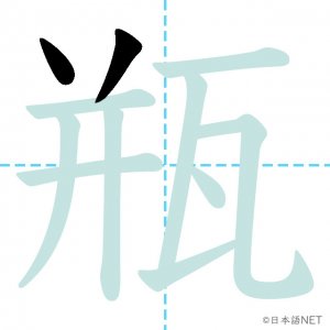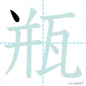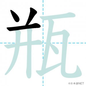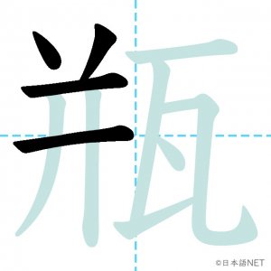 N1 漢字漢字【JLPT N1漢字】「瓶」の意味・読み方・書き順 2021年5月31日 2021年5月31日 Facebook postはてブLINEPocketFeedlyfa-exclamation-triangle記事内に商品プロモーションが含まれる場合があります目次1 「瓶」の漢字について2 「瓶」の書き順3 「瓶」を含む言葉4 関連書籍「瓶」の漢字について読み方音読みびん訓読み-意味bottle部首瓦画数11JLPTレベルN1 「瓶」の書き順1画目2画目3画目4画目5画目6画目7画目8画目9画目10画目11画目「瓶」を含む言葉瓶(びん)花瓶(かびん)瓶詰め(びんづめ)魔法瓶(まほうびん)ビール瓶(ビールびん)関連書籍 日本語総まとめ N1 漢字 [英語・ベトナム語版] (「日本語能力試験」対策) Amazon 楽天市場 Yahooショッピング 新完全マスター漢字 日本語能力試験N1 Amazon 楽天市場 Yahooショッピング 日本語を学ぶ外国人のための これで覚える! 漢字字典2500ナツメ社 Amazon 楽天市場 Yahooショッピング Facebook postはてブLINEPocketFeedly