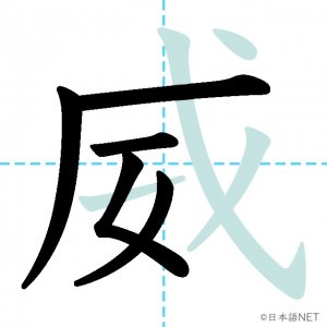 N1 漢字漢字【JLPT N1漢字】「威」の意味・読み方・書き順 2021年6月2日 2021年6月2日 Facebook postはてブLINEPocketFeedlyfa-exclamation-triangle記事内に商品プロモーションが含まれる場合があります目次1 「威」の漢字について2 「威」の書き順3 「威」を含む言葉4 関連書籍「威」の漢字について読み方音読みい訓読み-意味to Intimidate部首女画数9JLPTレベルN1 「威」の書き順1画目2画目3画目4画目5画目6画目7画目8画目9画目「威」を含む言葉威力(いりょく)威嚇(いかく)威勢(いせい)威厳(いげん)権威(けんい)威張る(いばる)関連書籍 日本語総まとめ N1 漢字 [英語・ベトナム語版] (「日本語能力試験」対策) Amazon 楽天市場 Yahooショッピング 新完全マスター漢字 日本語能力試験N1 Amazon 楽天市場 Yahooショッピング 日本語を学ぶ外国人のための これで覚える! 漢字字典2500ナツメ社 Amazon 楽天市場 Yahooショッピング Facebook postはてブLINEPocketFeedly
