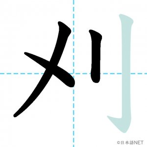 N1 漢字漢字【JLPT N1漢字】「刈」の意味・読み方・書き順 2021年6月4日 2021年6月4日 Facebook postはてブLINEPocketFeedlyfa-exclamation-triangle記事内に商品プロモーションが含まれる場合があります目次1 「刈」の漢字について2 「刈」の書き順3 「刈」を含む言葉4 関連書籍「刈」の漢字について読み方音読み-訓読みか-る意味to clip / to mow / to cut部首刀(刂)画数4JLPTレベルN1 「刈」の書き順1画目2画目3画目4画目「刈」を含む言葉刈る(かる)稲刈り(いねかり)関連書籍 日本語総まとめ N1 漢字 [英語・ベトナム語版] (「日本語能力試験」対策) Amazon 楽天市場 Yahooショッピング 新完全マスター漢字 日本語能力試験N1 Amazon 楽天市場 Yahooショッピング 日本語を学ぶ外国人のための これで覚える! 漢字字典2500ナツメ社 Amazon 楽天市場 Yahooショッピング Facebook postはてブLINEPocketFeedly