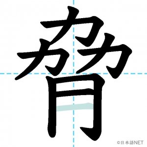 N1 漢字漢字【JLPT N1漢字】「脅」の意味・読み方・書き順 2021年6月4日 2021年6月4日 Facebook postはてブLINEPocketFeedlyfa-exclamation-triangle記事内に商品プロモーションが含まれる場合があります目次1 「脅」の漢字について2 「脅」の書き順3 「脅」を含む言葉4 関連書籍「脅」の漢字について読み方音読みきょう訓読みおど-す おど-かす おびやか-す意味to threaten部首肉(⺼) 画数10JLPTレベルN1 「脅」の書き順1画目2画目3画目4画目5画目6画目7画目8画目9画目10画目「脅」を含む言葉脅す(おどす)脅かす(おどかす)脅迫(きょうはく)脅威(きょうい)関連書籍 日本語総まとめ N1 漢字 [英語・ベトナム語版] (「日本語能力試験」対策) Amazon 楽天市場 Yahooショッピング 新完全マスター漢字 日本語能力試験N1 Amazon 楽天市場 Yahooショッピング 日本語を学ぶ外国人のための これで覚える! 漢字字典2500ナツメ社 Amazon 楽天市場 Yahooショッピング Facebook postはてブLINEPocketFeedly