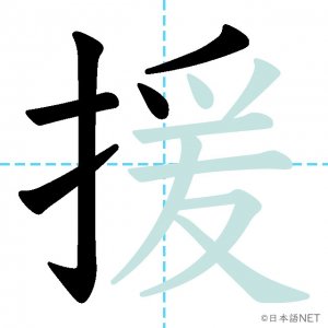 N1 漢字漢字【JLPT N1漢字】「援」の意味・読み方・書き順 2021年6月17日 2021年6月17日 Facebook postはてブLINEPocketFeedlyfa-exclamation-triangle記事内に商品プロモーションが含まれる場合があります目次1 「援」の漢字について2 「援」の書き順3 「援」を含む言葉4 関連書籍「援」の漢字について読み方音読みえん訓読み-意味to help / to assist部首手(扌龵)画数12JLPTレベルN1 「援」の書き順1画目2画目3画目4画目5画目6画目7画目8画目9画目10画目11画目12画目「援」を含む言葉応援(おうえん)援助(えんじょ)救援(きゅうえん)声援(せいえん)増援(ぞうえん)援護(えんご)関連書籍 日本語総まとめ N1 漢字 [英語・ベトナム語版] (「日本語能力試験」対策) Amazon 楽天市場 Yahooショッピング 新完全マスター漢字 日本語能力試験N1 Amazon 楽天市場 Yahooショッピング 日本語を学ぶ外国人のための これで覚える! 漢字字典2500ナツメ社 Amazon 楽天市場 Yahooショッピング Facebook postはてブLINEPocketFeedly