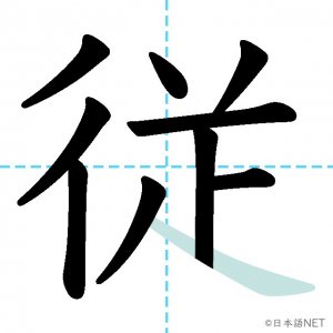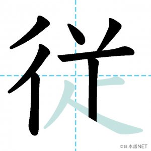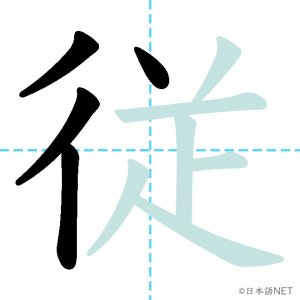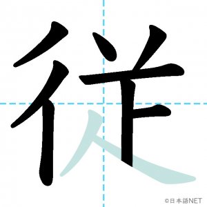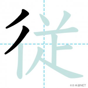 N1 漢字漢字【JLPT N1漢字】「従」の意味・読み方・書き順 2021年6月25日 2021年6月25日 Facebook postはてブLINEPocketFeedlyfa-exclamation-triangle記事内に商品プロモーションが含まれる場合があります目次1 「従」の漢字について2 「従」の書き順3 「従」を含む言葉4 関連書籍「従」の漢字について読み方音読みじゅう しょう じゅ訓読みしたが-う したが-える意味to obey / to follow部首彳画数10JLPTレベルN1 「従」の書き順1画目2画目3画目4画目5画目6画目7画目8画目9画目「従」を含む言葉従う(したがう)従姉妹(いとこ)従兄弟(いとこ)従業員(じゅうぎょういん)従来(じゅうらい)主従(しゅじゅう)関連書籍 日本語総まとめ N1 漢字 [英語・ベトナム語版] (「日本語能力試験」対策) Amazon 楽天市場 Yahooショッピング 新完全マスター漢字 日本語能力試験N1 Amazon 楽天市場 Yahooショッピング 日本語を学ぶ外国人のための これで覚える! 漢字字典2500ナツメ社 Amazon 楽天市場 Yahooショッピング Facebook postはてブLINEPocketFeedly