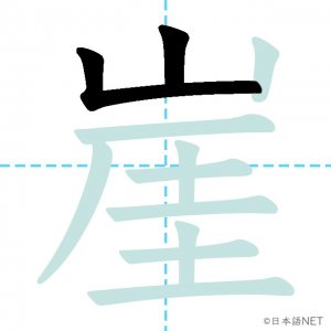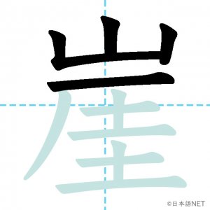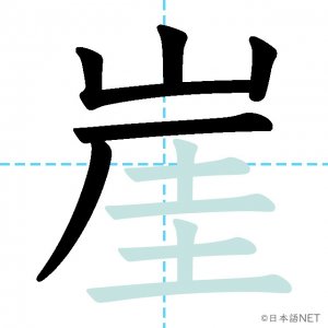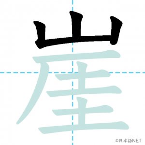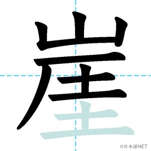 N1 漢字漢字【JLPT N1漢字】「崖」の意味・読み方・書き順 2021年6月28日 2021年6月28日 Facebook postはてブLINEPocketFeedlyfa-exclamation-triangle記事内に商品プロモーションが含まれる場合があります目次1 「崖」の漢字について2 「崖」の書き順3 「崖」を含む言葉4 関連書籍「崖」の漢字について読み方音読みがい訓読みがけ意味cliff / precipice部首山画数11JLPTレベルN1 「崖」の書き順1画目2画目3画目4画目5画目6画目7画目8画目9画目10画目11画目「崖」を含む言葉崖(がけ)断崖(だんがい)関連書籍 日本語総まとめ N1 漢字 [英語・ベトナム語版] (「日本語能力試験」対策) Amazon 楽天市場 Yahooショッピング 新完全マスター漢字 日本語能力試験N1 Amazon 楽天市場 Yahooショッピング 日本語を学ぶ外国人のための これで覚える! 漢字字典2500ナツメ社 Amazon 楽天市場 Yahooショッピング Facebook postはてブLINEPocketFeedly