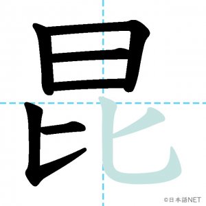 N1 漢字漢字【JLPT N1漢字】「昆」の意味・読み方・書き順 2021年6月30日 2021年6月30日 Facebook postはてブLINEPocketFeedlyfa-exclamation-triangle記事内に商品プロモーションが含まれる場合があります目次1 「昆」の漢字について2 「昆」の書き順3 「昆」を含む言葉4 関連書籍「昆」の漢字について読み方音読みこん訓読み-意味insect / descendants部首日画数8JLPTレベルN1 「昆」の書き順1画目2画目3画目4画目5画目6画目7画目8画目「昆」を含む言葉昆虫(こんちゅう)昆布(こんぶ)関連書籍 日本語総まとめ N1 漢字 [英語・ベトナム語版] (「日本語能力試験」対策) Amazon 楽天市場 Yahooショッピング 新完全マスター漢字 日本語能力試験N1 Amazon 楽天市場 Yahooショッピング 日本語を学ぶ外国人のための これで覚える! 漢字字典2500ナツメ社 Amazon 楽天市場 Yahooショッピング Facebook postはてブLINEPocketFeedly