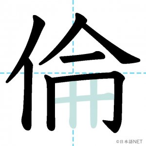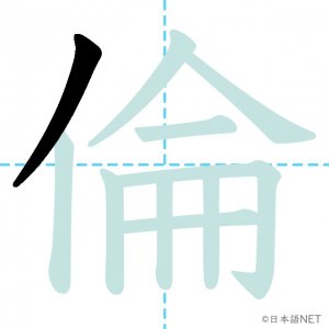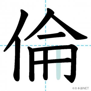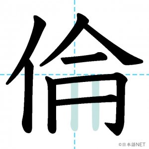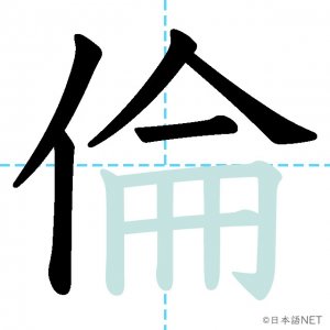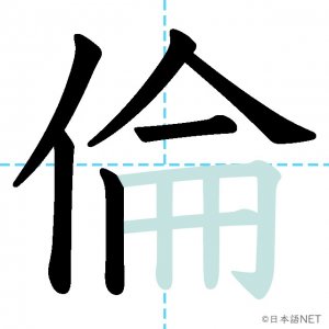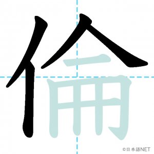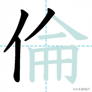 N1 漢字漢字【JLPT N1漢字】「倫」の意味・読み方・書き順 2021年7月3日 2021年7月3日 Facebook postはてブLINEPocketFeedlyfa-exclamation-triangle記事内に商品プロモーションが含まれる場合があります目次1 「倫」の漢字について2 「倫」の書き順3 「倫」を含む言葉4 関連書籍「倫」の漢字について読み方音読みりん訓読み-意味ethics部首人(亻)画数10JLPTレベルN1 「倫」の書き順1画目2画目3画目4画目5画目6画目7画目8画目9画目10画目「倫」を含む言葉倫理(りんり)不倫(ふりん)関連書籍 日本語総まとめ N1 漢字 [英語・ベトナム語版] (「日本語能力試験」対策) Amazon 楽天市場 Yahooショッピング 新完全マスター漢字 日本語能力試験N1 Amazon 楽天市場 Yahooショッピング 日本語を学ぶ外国人のための これで覚える! 漢字字典2500ナツメ社 Amazon 楽天市場 Yahooショッピング Facebook postはてブLINEPocketFeedly