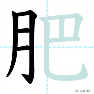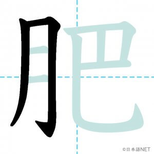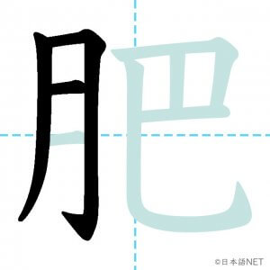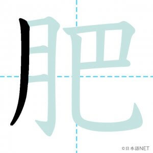 N1 漢字漢字【JLPT N1漢字】「肥」の意味・読み方・書き順 2021年7月6日 2021年7月6日 Facebook postはてブLINEPocketFeedlyfa-exclamation-triangle記事内に商品プロモーションが含まれる場合があります目次1 「肥」の漢字について2 「肥」の書き順3 「肥」を含む言葉4 関連書籍「肥」の漢字について読み方音読みひ訓読みこ-える意味fertilizer / to get fat / manure部首肉(⺼)画数8JLPTレベルN1 「肥」の書き順1画目2画目3画目4画目5画目6画目7画目8画目「肥」を含む言葉肥料(ひりょう)肥大(ひだい)肥満(ひまん)肥える(こえる)関連書籍 日本語総まとめ N1 漢字 [英語・ベトナム語版] (「日本語能力試験」対策) Amazon 楽天市場 Yahooショッピング 新完全マスター漢字 日本語能力試験N1 Amazon 楽天市場 Yahooショッピング 日本語を学ぶ外国人のための これで覚える! 漢字字典2500ナツメ社 Amazon 楽天市場 Yahooショッピング Facebook postはてブLINEPocketFeedly