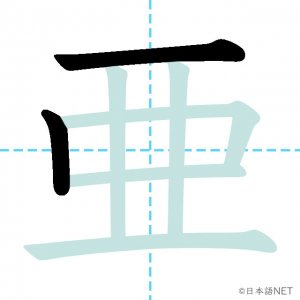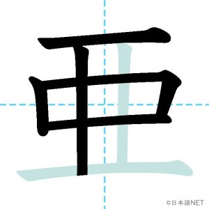 N1 漢字漢字【JLPT N1漢字】「亜」の意味・読み方・書き順 2021年7月7日 2021年7月7日 Facebook postはてブLINEPocketFeedlyfa-exclamation-triangle記事内に商品プロモーションが含まれる場合があります目次1 「亜」の漢字について2 「亜」の書き順3 「亜」を含む言葉4 関連書籍「亜」の漢字について読み方音読みあ訓読み-意味Asia部首二画数7JLPTレベルN1 「亜」の書き順1画目2画目3画目4画目5画目6画目7画目「亜」を含む言葉亜鉛(あえん)亜熱帯(あねったい)亜種(あしゅ)関連書籍 日本語総まとめ N1 漢字 [英語・ベトナム語版] (「日本語能力試験」対策) Amazon 楽天市場 Yahooショッピング 新完全マスター漢字 日本語能力試験N1 Amazon 楽天市場 Yahooショッピング 日本語を学ぶ外国人のための これで覚える! 漢字字典2500ナツメ社 Amazon 楽天市場 Yahooショッピング Facebook postはてブLINEPocketFeedly