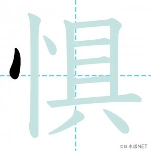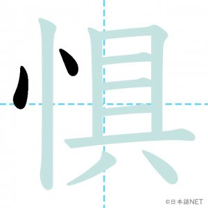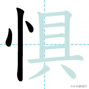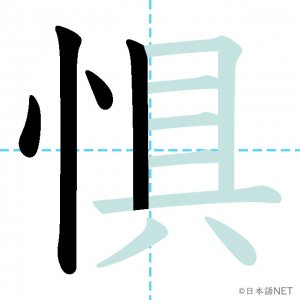 N1 漢字漢字【JLPT N1漢字】「惧」の意味・読み方・書き順 2021年7月8日 2021年7月8日 Facebook postはてブLINEPocketFeedlyfa-exclamation-triangle記事内に商品プロモーションが含まれる場合があります目次1 「惧」の漢字について2 「惧」の書き順3 「惧」を含む言葉4 関連書籍「惧」の漢字について読み方音読みぐ訓読み-意味fear部首心(忄⺗)画数11JLPTレベルN1 「惧」の書き順1画目2画目3画目4画目5画目6画目7画目8画目9画目10画目11画目「惧」を含む言葉危惧(きぐ)関連書籍 日本語総まとめ N1 漢字 [英語・ベトナム語版] (「日本語能力試験」対策) Amazon 楽天市場 Yahooショッピング 新完全マスター漢字 日本語能力試験N1 Amazon 楽天市場 Yahooショッピング 日本語を学ぶ外国人のための これで覚える! 漢字字典2500ナツメ社 Amazon 楽天市場 Yahooショッピング Facebook postはてブLINEPocketFeedly