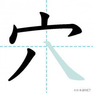 N1 漢字漢字【JLPT N1漢字】「穴」の意味・読み方・書き順 2021年7月9日 2021年7月9日 Facebook postはてブLINEPocketFeedlyfa-exclamation-triangle記事内に商品プロモーションが含まれる場合があります目次1 「穴」の漢字について2 「穴」の書き順3 「穴」を含む言葉4 関連書籍「穴」の漢字について読み方音読みけつ訓読みあな意味hole部首穴画数5JLPTレベルN1 「穴」の書き順1画目2画目3画目4画目5画目「穴」を含む言葉穴(あな)穴場(あなば)墓穴(ぼけつ)洞穴(ほらあな)穴子(あなご)落とし穴(おとしあな)関連書籍 日本語総まとめ N1 漢字 [英語・ベトナム語版] (「日本語能力試験」対策) Amazon 楽天市場 Yahooショッピング 新完全マスター漢字 日本語能力試験N1 Amazon 楽天市場 Yahooショッピング 日本語を学ぶ外国人のための これで覚える! 漢字字典2500ナツメ社 Amazon 楽天市場 Yahooショッピング Facebook postはてブLINEPocketFeedly