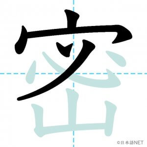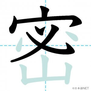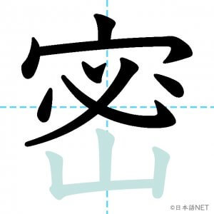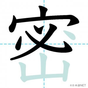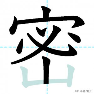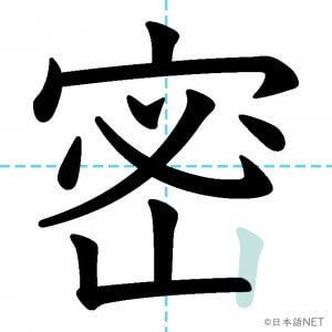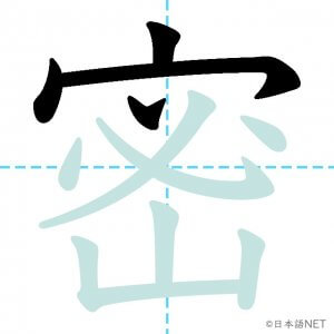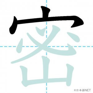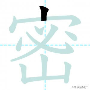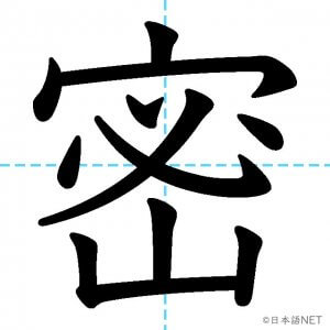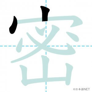N1 漢字漢字【JLPT N1漢字】「密」の意味・読み方・書き順 2021年7月12日 2021年7月12日 Facebook postはてブLINEPocketFeedlyfa-exclamation-triangle記事内に商品プロモーションが含まれる場合があります目次1 「密」の漢字について2 「密」の書き順3 「密」を含む言葉4 関連書籍「密」の漢字について読み方音読みみつ訓読みひそ-か意味dense / secret部首宀画数11JLPTレベルN1 「密」の書き順1画目2画目3画目4画目5画目6画目7画目8画目9画目10画目11画目「密」を含む言葉秘密(ひみつ)密度(みつど)密集(みっしゅう)厳密(げんみつ)密か(ひそか)密接(みっせつ)密告(みっこく)密売(みつばい)密室(みっしつ)過密(かみつ)内密(ないみつ)機密(きみつ)関連書籍 日本語総まとめ N1 漢字 [英語・ベトナム語版] (「日本語能力試験」対策) Amazon 楽天市場 Yahooショッピング 新完全マスター漢字 日本語能力試験N1 Amazon 楽天市場 Yahooショッピング 日本語を学ぶ外国人のための これで覚える! 漢字字典2500ナツメ社 Amazon 楽天市場 Yahooショッピング Facebook postはてブLINEPocketFeedly