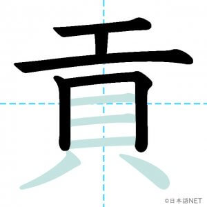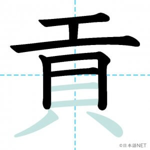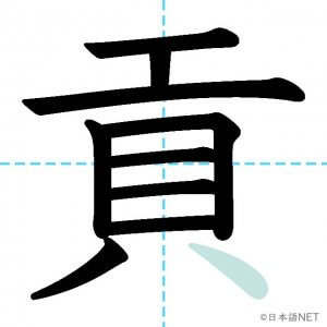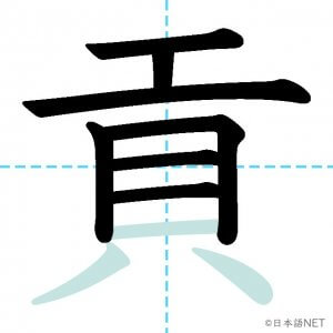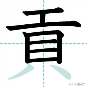 N1 漢字漢字【JLPT N1漢字】「貢」の意味・読み方・書き順 2021年7月14日 2021年7月14日 Facebook postはてブLINEPocketFeedlyfa-exclamation-triangle記事内に商品プロモーションが含まれる場合があります目次1 「貢」の漢字について2 「貢」の書き順3 「貢」を含む言葉4 関連書籍「貢」の漢字について読み方音読みこう / く訓読みみつ-ぐ意味tribute部首貝画数10JLPTレベルN1 「貢」の書き順1画目2画目3画目4画目5画目6画目7画目8画目9画目10画目「貢」を含む言葉貢献(こうけん)貢ぎ物(みつぎもの)貢ぐ(みつぐ)年貢(ねんぐ)関連書籍 日本語総まとめ N1 漢字 [英語・ベトナム語版] (「日本語能力試験」対策) Amazon 楽天市場 Yahooショッピング 新完全マスター漢字 日本語能力試験N1 Amazon 楽天市場 Yahooショッピング 日本語を学ぶ外国人のための これで覚える! 漢字字典2500ナツメ社 Amazon 楽天市場 Yahooショッピング Facebook postはてブLINEPocketFeedly