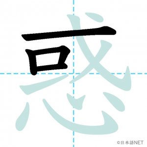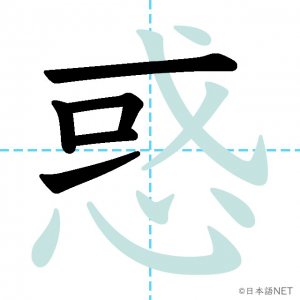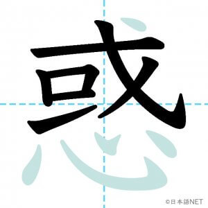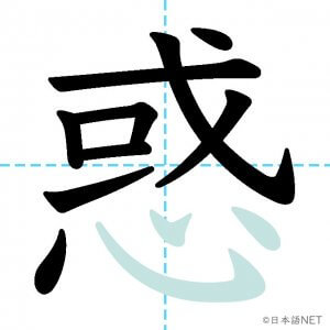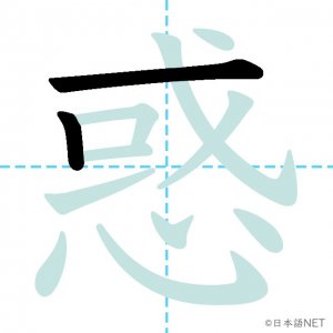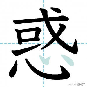 N1 漢字漢字【JLPT N1漢字】「惑」の意味・読み方・書き順 2021年7月15日 2021年7月15日 Facebook postはてブLINEPocketFeedlyfa-exclamation-triangle記事内に商品プロモーションが含まれる場合があります目次1 「惑」の漢字について2 「惑」の書き順3 「惑」を含む言葉4 関連書籍「惑」の漢字について読み方音読みわく訓読みまど-う意味to beguile / delusion / perplexity部首心(忄⺗)画数12JLPTレベルN1 「惑」の書き順1画目2画目3画目4画目5画目6画目7画目8画目9画目10画目11画目12画目「惑」を含む言葉迷惑(めいわく)誘惑(ゆうわく)疑惑(ぎわく)惑星(わくせい)困惑(こんわく)思惑(おもわく)関連書籍 日本語総まとめ N1 漢字 [英語・ベトナム語版] (「日本語能力試験」対策) Amazon 楽天市場 Yahooショッピング 新完全マスター漢字 日本語能力試験N1 Amazon 楽天市場 Yahooショッピング 日本語を学ぶ外国人のための これで覚える! 漢字字典2500ナツメ社 Amazon 楽天市場 Yahooショッピング Facebook postはてブLINEPocketFeedly