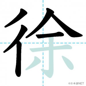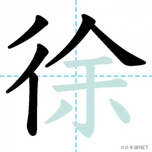 N1 漢字漢字【JLPT N1漢字】「徐」の意味・読み方・書き順 2021年7月19日 2021年7月19日 Facebook postはてブLINEPocketFeedlyfa-exclamation-triangle記事内に商品プロモーションが含まれる場合があります目次1 「徐」の漢字について2 「徐」の書き順3 「徐」を含む言葉4 関連書籍「徐」の漢字について読み方音読みじょ訓読み-意味gradually / slowly部首彳画数10JLPTレベルN1 「徐」の書き順1画目2画目3画目4画目5画目6画目7画目8画目9画目10画目「徐」を含む言葉徐行(じょこう)徐々に(じょじょに)関連書籍 日本語総まとめ N1 漢字 [英語・ベトナム語版] (「日本語能力試験」対策) Amazon 楽天市場 Yahooショッピング 新完全マスター漢字 日本語能力試験N1 Amazon 楽天市場 Yahooショッピング 日本語を学ぶ外国人のための これで覚える! 漢字字典2500ナツメ社 Amazon 楽天市場 Yahooショッピング Facebook postはてブLINEPocketFeedly