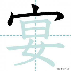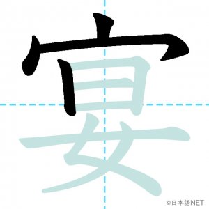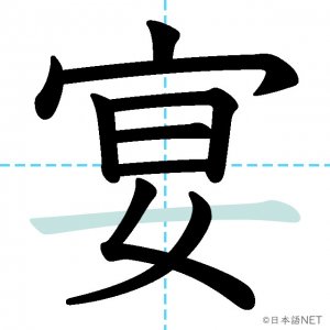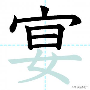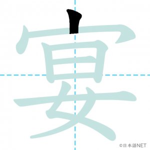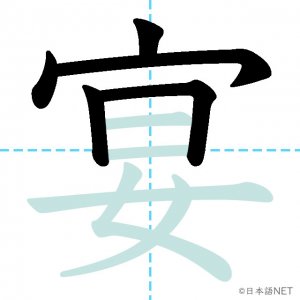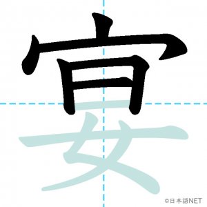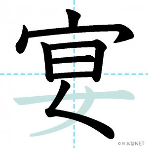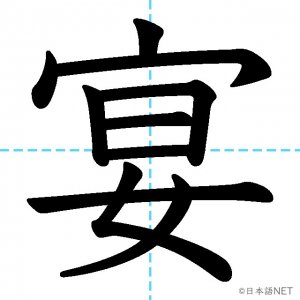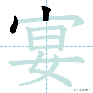 N1 漢字漢字【JLPT N1漢字】「宴」の意味・読み方・書き順 2021年7月23日 2021年7月23日 Facebook postはてブLINEPocketFeedlyfa-exclamation-triangle記事内に商品プロモーションが含まれる場合があります目次1 「宴」の漢字について2 「宴」の書き順3 「宴」を含む言葉4 関連書籍「宴」の漢字について読み方音読みえん訓読みうたげ意味banquet / feast / party部首宀画数10JLPTレベルN1 「宴」の書き順1画目2画目3画目4画目5画目6画目7画目8画目9画目10画目「宴」を含む言葉宴会(えんかい)披露宴(ひろうえん)関連書籍 日本語総まとめ N1 漢字 [英語・ベトナム語版] (「日本語能力試験」対策) Amazon 楽天市場 Yahooショッピング 新完全マスター漢字 日本語能力試験N1 Amazon 楽天市場 Yahooショッピング 日本語を学ぶ外国人のための これで覚える! 漢字字典2500ナツメ社 Amazon 楽天市場 Yahooショッピング Facebook postはてブLINEPocketFeedly