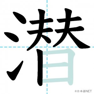 N1 漢字漢字【JLPT N1漢字】「潜」の意味・読み方・書き順 2021年7月26日 2021年7月26日 Facebook postはてブLINEPocketFeedlyfa-exclamation-triangle記事内に商品プロモーションが含まれる場合があります目次1 「潜」の漢字について2 「潜」の書き順3 「潜」を含む言葉4 関連書籍「潜」の漢字について読み方音読みせん訓読みひそ-む もぐ-る意味to submerge / to dive / to hide部首水(氵,氺)画数15JLPTレベルN1 「潜」の書き順1画目2画目3画目4画目5画目6画目7画目8画目9画目10画目11画目12画目13画目14画目15画目「潜」を含む言葉潜る(もぐる)潜む(ひそむ)潜伏(せんぷく)潜水艦(せんすいかん)潜入(せんにゅう)潜在的(せんざいてき)関連書籍 日本語総まとめ N1 漢字 [英語・ベトナム語版] (「日本語能力試験」対策) Amazon 楽天市場 Yahooショッピング 新完全マスター漢字 日本語能力試験N1 Amazon 楽天市場 Yahooショッピング 日本語を学ぶ外国人のための これで覚える! 漢字字典2500ナツメ社 Amazon 楽天市場 Yahooショッピング Facebook postはてブLINEPocketFeedly