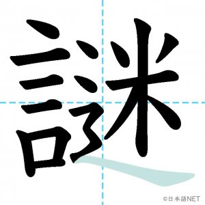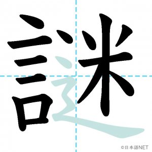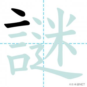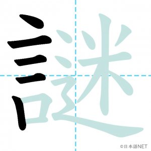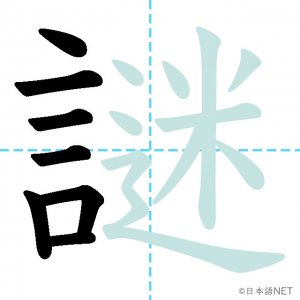 N1 漢字漢字【JLPT N1漢字】「謎」の意味・読み方・書き順 2021年8月4日 2021年8月4日 Facebook postはてブLINEPocketFeedlyfa-exclamation-triangle記事内に商品プロモーションが含まれる場合があります目次1 「謎」の漢字について2 「謎」の書き順3 「謎」を含む言葉4 関連書籍「謎」の漢字について読み方音読みめい / べい訓読みなぞ意味riddle / puzzle / mystery部首言画数17JLPTレベルN1 「謎」の書き順1画目2画目3画目4画目5画目6画目7画目8画目9画目10画目11画目12画目13画目14画目15画目16画目17画目「謎」を含む言葉謎(なぞ)関連書籍 日本語総まとめ N1 漢字 [英語・ベトナム語版] (「日本語能力試験」対策) Amazon 楽天市場 Yahooショッピング 新完全マスター漢字 日本語能力試験N1 Amazon 楽天市場 Yahooショッピング 日本語を学ぶ外国人のための これで覚える! 漢字字典2500ナツメ社 Amazon 楽天市場 Yahooショッピング Facebook postはてブLINEPocketFeedly
