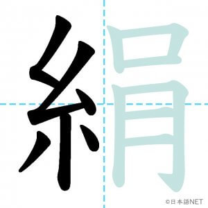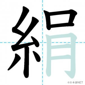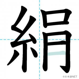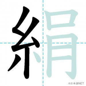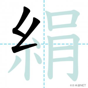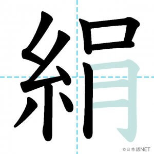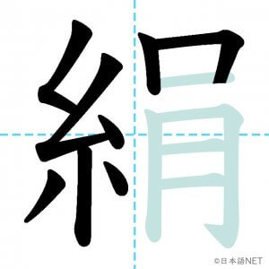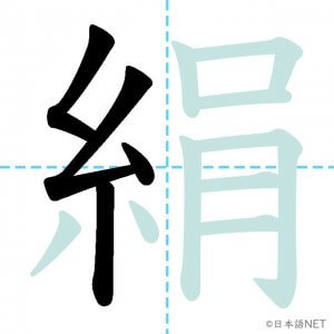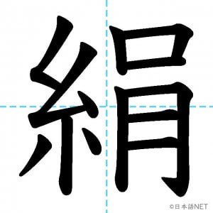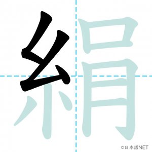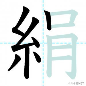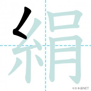 N1 漢字漢字【JLPT N1漢字】「絹」の意味・読み方・書き順 2021年8月9日 2021年8月9日 Facebook postはてブLINEPocketFeedlyfa-exclamation-triangle記事内に商品プロモーションが含まれる場合があります目次1 「絹」の漢字について2 「絹」の書き順3 「絹」を含む言葉4 関連書籍「絹」の漢字について読み方音読みけん訓読みきぬ意味silk部首糸画数13JLPTレベルN1 「絹」の書き順1画目2画目3画目4画目5画目6画目7画目8画目9画目10画目11画目12画目13画目「絹」を含む言葉絹(きぬ)関連書籍 日本語総まとめ N1 漢字 [英語・ベトナム語版] (「日本語能力試験」対策) Amazon 楽天市場 Yahooショッピング 新完全マスター漢字 日本語能力試験N1 Amazon 楽天市場 Yahooショッピング 日本語を学ぶ外国人のための これで覚える! 漢字字典2500ナツメ社 Amazon 楽天市場 Yahooショッピング Facebook postはてブLINEPocketFeedly