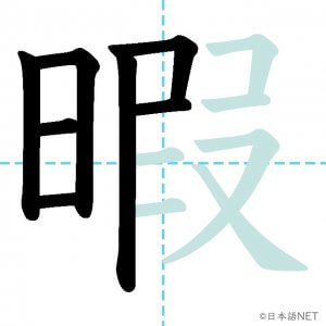 N1 漢字漢字【JLPT N1漢字】「暇」の意味・読み方・書き順 2021年8月10日 2021年8月10日 Facebook postはてブLINEPocketFeedlyfa-exclamation-triangle記事内に商品プロモーションが含まれる場合があります目次1 「暇」の漢字について2 「暇」の書き順3 「暇」を含む言葉4 関連書籍「暇」の漢字について読み方音読みか訓読みひま意味spare time / leisure部首日画数13JLPTレベルN1 「暇」の書き順1画目2画目3画目4画目5画目6画目7画目8画目9画目10画目11画目12画目13画目「暇」を含む言葉休暇(きゅうか)暇(ひま)余暇(よか)関連書籍 日本語総まとめ N1 漢字 [英語・ベトナム語版] (「日本語能力試験」対策) Amazon 楽天市場 Yahooショッピング 新完全マスター漢字 日本語能力試験N1 Amazon 楽天市場 Yahooショッピング 日本語を学ぶ外国人のための これで覚える! 漢字字典2500ナツメ社 Amazon 楽天市場 Yahooショッピング Facebook postはてブLINEPocketFeedly