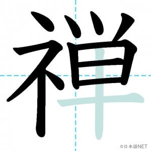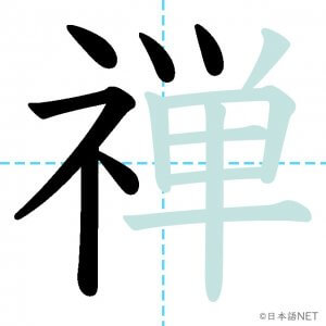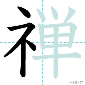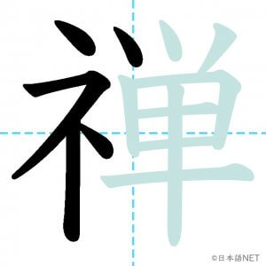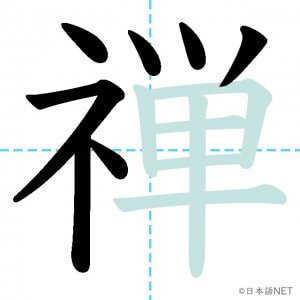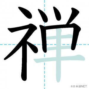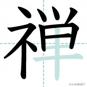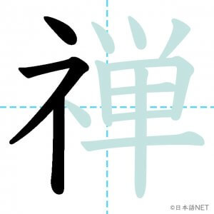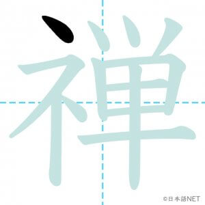 N1 漢字漢字【JLPT N1漢字】「禅」の意味・読み方・書き順 2021年8月10日 2021年8月10日 Facebook postはてブLINEPocketFeedlyfa-exclamation-triangle記事内に商品プロモーションが含まれる場合があります目次1 「禅」の漢字について2 「禅」の書き順3 「禅」を含む言葉4 関連書籍「禅」の漢字について読み方音読みぜん訓読み-意味zen / meditation部首示 (礻)画数13JLPTレベルN1 「禅」の書き順1画目2画目3画目4画目5画目6画目7画目8画目9画目10画目11画目12画目13画目「禅」を含む言葉禅(ぜん)座禅(ざぜん)禅宗(ぜんしゅう)関連書籍 日本語総まとめ N1 漢字 [英語・ベトナム語版] (「日本語能力試験」対策) Amazon 楽天市場 Yahooショッピング 新完全マスター漢字 日本語能力試験N1 Amazon 楽天市場 Yahooショッピング 日本語を学ぶ外国人のための これで覚える! 漢字字典2500ナツメ社 Amazon 楽天市場 Yahooショッピング Facebook postはてブLINEPocketFeedly
