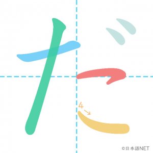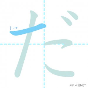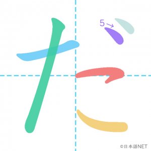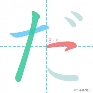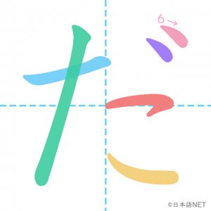 ひらがな仮名ひらがな「だ」の書き順 2021年8月13日 2021年8月17日 Facebook postはてブLINEPocketFeedlyfa-exclamation-triangle記事内に商品プロモーションが含まれる場合があります読み方 (ローマ字)訓令式daヘボン式da画数6目次1 「だ」の書き順2 「だ」を含む言葉3 ひらがなクイズ4 関連書籍「だ」の書き順1画目2画目3画目4画目5画目6画目 「だ」を含む言葉かいだん(階段)かだん(花壇)そうだん(相談)だいすき(大好き)とだな(戸棚)ともだち(友達)はだ(肌)まだわだい(話題)ひらがなクイズクイズへfa-angle-double-right関連書籍 すぐ書ける! きれいに書ける! ひらがな・カタカナ練習ノート (日本語文字学習シリーズ) Amazon 楽天市場 Yahooショッピング Facebook postはてブLINEPocketFeedly