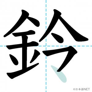 N1 漢字漢字【JLPT N1漢字】「鈴」の意味・読み方・書き順 2021年8月18日 2021年8月18日 Facebook postはてブLINEPocketFeedlyfa-exclamation-triangle記事内に商品プロモーションが含まれる場合があります目次1 「鈴」の漢字について2 「鈴」の書き順3 「鈴」を含む言葉4 関連書籍「鈴」の漢字について読み方音読みれい りん訓読みすず意味bell部首金画数13JLPTレベルN1 「鈴」の書き順1画目2画目3画目4画目5画目6画目7画目8画目9画目10画目11画目12画目13画目「鈴」を含む言葉鈴(すず)風鈴(ふうりん)関連書籍 日本語総まとめ N1 漢字 [英語・ベトナム語版] (「日本語能力試験」対策) Amazon 楽天市場 Yahooショッピング 新完全マスター漢字 日本語能力試験N1 Amazon 楽天市場 Yahooショッピング 日本語を学ぶ外国人のための これで覚える! 漢字字典2500ナツメ社 Amazon 楽天市場 Yahooショッピング Facebook postはてブLINEPocketFeedly