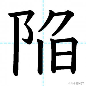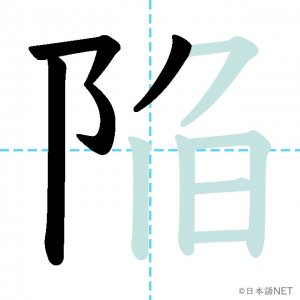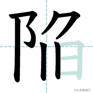 N1 漢字漢字【JLPT N1漢字】「陥」の意味・読み方・書き順 2021年8月25日 2021年8月25日 Facebook postはてブLINEPocketFeedlyfa-exclamation-triangle記事内に商品プロモーションが含まれる場合があります目次1 「陥」の漢字について2 「陥」の書き順3 「陥」を含む言葉4 関連書籍「陥」の漢字について読み方音読みかん訓読みおちい-る おとしい-れる意味collapse / to fall into部首阜 (阝)画数10JLPTレベルN1 「陥」の書き順1画目2画目3画目4画目5画目6画目7画目8画目9画目10画目「陥」を含む言葉欠陥(けっかん)陥没(かんぼつ)関連書籍 日本語総まとめ N1 漢字 [英語・ベトナム語版] (「日本語能力試験」対策) Amazon 楽天市場 Yahooショッピング 新完全マスター漢字 日本語能力試験N1 Amazon 楽天市場 Yahooショッピング 日本語を学ぶ外国人のための これで覚える! 漢字字典2500ナツメ社 Amazon 楽天市場 Yahooショッピング Facebook postはてブLINEPocketFeedly