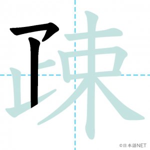 N1 漢字漢字【JLPT N1漢字】「疎」の意味・読み方・書き順 2021年8月25日 2021年8月25日 Facebook postはてブLINEPocketFeedlyfa-exclamation-triangle記事内に商品プロモーションが含まれる場合があります目次1 「疎」の漢字について2 「疎」の書き順3 「疎」を含む言葉4 関連書籍「疎」の漢字について読み方音読みそ訓読みうと-い うと-む意味to alienate / sparse部首疋(⺪)画数12JLPTレベルN1 「疎」の書き順1画目2画目3画目4画目5画目6画目7画目8画目9画目10画目11画目12画目「疎」を含む言葉疎い(うとい)過疎(かそ)疎外(そがい)関連書籍 日本語総まとめ N1 漢字 [英語・ベトナム語版] (「日本語能力試験」対策) Amazon 楽天市場 Yahooショッピング 新完全マスター漢字 日本語能力試験N1 Amazon 楽天市場 Yahooショッピング 日本語を学ぶ外国人のための これで覚える! 漢字字典2500ナツメ社 Amazon 楽天市場 Yahooショッピング Facebook postはてブLINEPocketFeedly