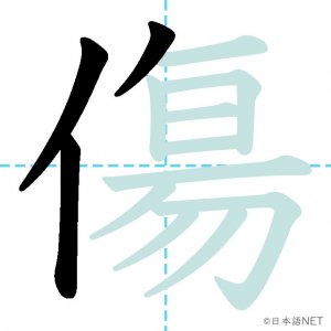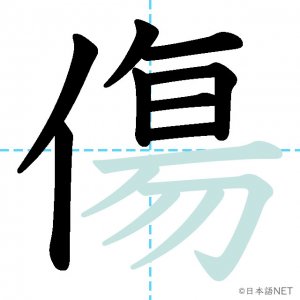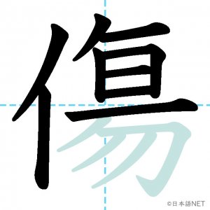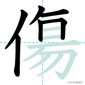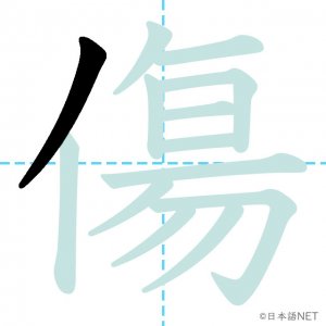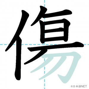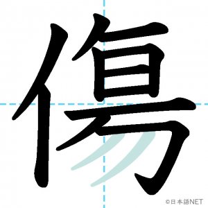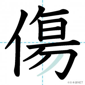N1 漢字漢字【JLPT N1漢字】「傷」の意味・読み方・書き順 2021年8月26日 2021年8月26日 Facebook postはてブLINEPocketFeedlyfa-exclamation-triangle記事内に商品プロモーションが含まれる場合があります目次1 「傷」の漢字について2 「傷」の書き順3 「傷」を含む言葉4 関連書籍「傷」の漢字について読み方音読みしょう訓読みきず いた-む いた-める意味wound / injury部首人(亻)画数13JLPTレベルN1 「傷」の書き順1画目2画目3画目4画目5画目6画目7画目8画目9画目10画目11画目12画目13画目「傷」を含む言葉傷(きず)傷跡(きずあと)負傷(ふしょう)火傷(やけど)中傷(ちゅうしょう)傷口(きずぐち)傷害(しょうがい)凍傷(とうしょう)関連書籍 日本語総まとめ N1 漢字 [英語・ベトナム語版] (「日本語能力試験」対策) Amazon 楽天市場 Yahooショッピング 新完全マスター漢字 日本語能力試験N1 Amazon 楽天市場 Yahooショッピング 日本語を学ぶ外国人のための これで覚える! 漢字字典2500ナツメ社 Amazon 楽天市場 Yahooショッピング Facebook postはてブLINEPocketFeedly