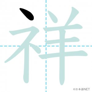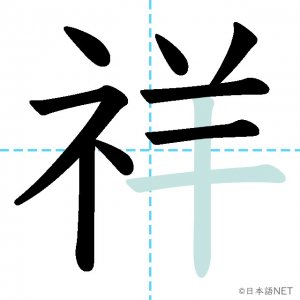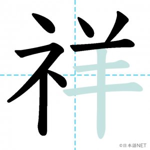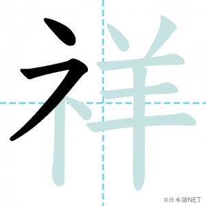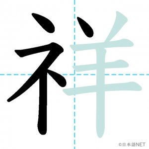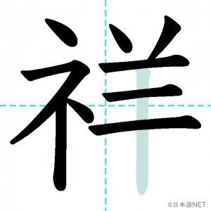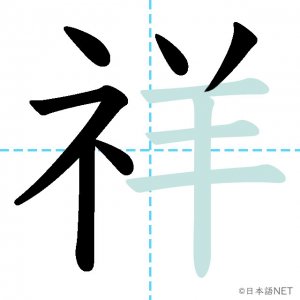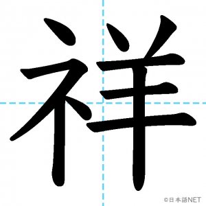 N1 漢字漢字【JLPT N1漢字】「祥」の意味・読み方・書き順 2021年8月26日 2021年8月26日 Facebook postはてブLINEPocketFeedlyfa-exclamation-triangle記事内に商品プロモーションが含まれる場合があります目次1 「祥」の漢字について2 「祥」の書き順3 「祥」を含む言葉4 関連書籍「祥」の漢字について読み方音読みしょう訓読み-意味auspicious部首示 (礻)画数10JLPTレベルN1 「祥」の書き順1画目2画目3画目4画目5画目6画目7画目8画目9画目10画目「祥」を含む言葉不祥事(ふしょうじ)発祥(はっしょう)関連書籍 日本語総まとめ N1 漢字 [英語・ベトナム語版] (「日本語能力試験」対策) Amazon 楽天市場 Yahooショッピング 新完全マスター漢字 日本語能力試験N1 Amazon 楽天市場 Yahooショッピング 日本語を学ぶ外国人のための これで覚える! 漢字字典2500ナツメ社 Amazon 楽天市場 Yahooショッピング Facebook postはてブLINEPocketFeedly