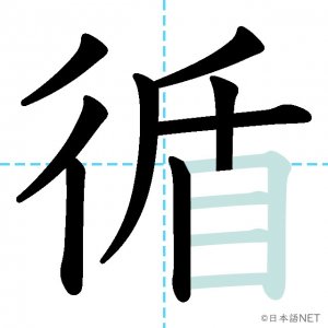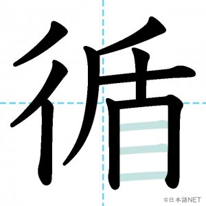 N1 漢字漢字【JLPT N1漢字】「循」の意味・読み方・書き順 2021年8月30日 2021年8月30日 Facebook postはてブLINEPocketFeedlyfa-exclamation-triangle記事内に商品プロモーションが含まれる場合があります目次1 「循」の漢字について2 「循」の書き順3 「循」を含む言葉4 関連書籍「循」の漢字について読み方音読みじゅん訓読み-意味to circulate / sequential部首彳画数12JLPTレベルN1 「循」の書き順1画目2画目3画目4画目5画目6画目7画目8画目9画目10画目11画目12画目「循」を含む言葉循環(じゅんかん)関連書籍 日本語総まとめ N1 漢字 [英語・ベトナム語版] (「日本語能力試験」対策) Amazon 楽天市場 Yahooショッピング 新完全マスター漢字 日本語能力試験N1 Amazon 楽天市場 Yahooショッピング 日本語を学ぶ外国人のための これで覚える! 漢字字典2500ナツメ社 Amazon 楽天市場 Yahooショッピング Facebook postはてブLINEPocketFeedly