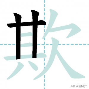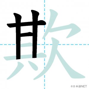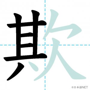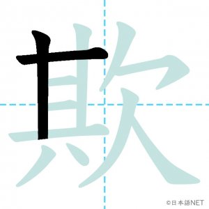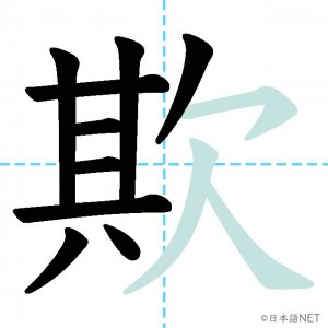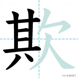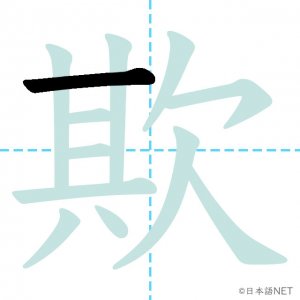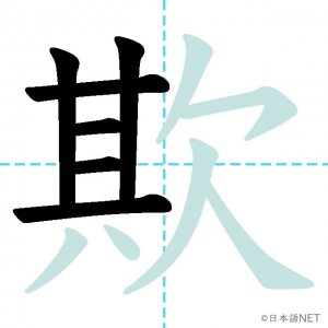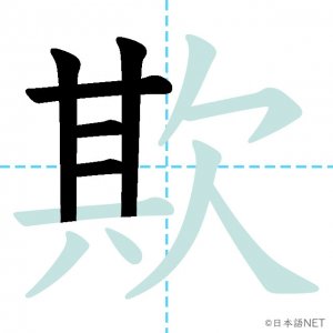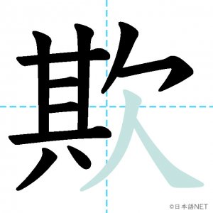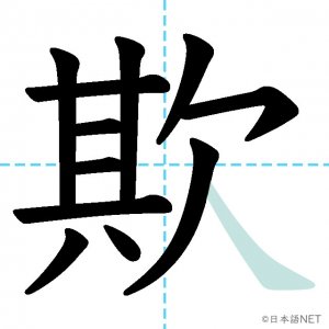 N1 漢字漢字【JLPT N1漢字】「欺」の意味・読み方・書き順 2021年9月4日 2021年9月4日 Facebook postはてブLINEPocketFeedlyfa-exclamation-triangle記事内に商品プロモーションが含まれる場合があります目次1 「欺」の漢字について2 「欺」の書き順3 「欺」を含む言葉4 関連書籍「欺」の漢字について読み方音読みぎ訓読みあざむ-く意味to deceive, / to cheat部首欠画数12JLPTレベルN1 「欺」の書き順1画目2画目3画目4画目5画目6画目7画目8画目9画目10画目11画目12画目「欺」を含む言葉欺く(あざむく)詐欺(さぎ)関連書籍 日本語総まとめ N1 漢字 [英語・ベトナム語版] (「日本語能力試験」対策) Amazon 楽天市場 Yahooショッピング 新完全マスター漢字 日本語能力試験N1 Amazon 楽天市場 Yahooショッピング 日本語を学ぶ外国人のための これで覚える! 漢字字典2500ナツメ社 Amazon 楽天市場 Yahooショッピング Facebook postはてブLINEPocketFeedly