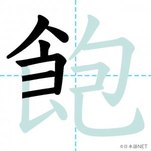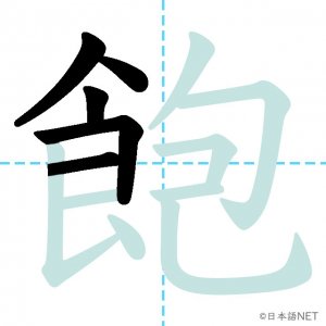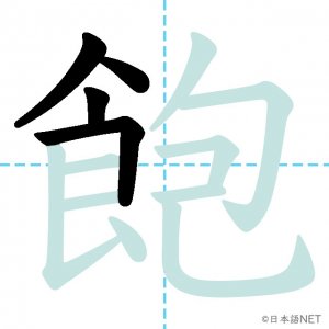 N1 漢字漢字【JLPT N1漢字】「飽」の意味・読み方・書き順 2021年9月20日 2021年9月20日 Facebook postはてブLINEPocketFeedlyfa-exclamation-triangle記事内に商品プロモーションが含まれる場合があります目次1 「飽」の漢字について2 「飽」の書き順3 「飽」を含む言葉4 関連書籍「飽」の漢字について読み方音読みほう訓読みあ-きる あ-かす意味sated / to get tired of部首食画数13JLPTレベルN1 「飽」の書き順1画目2画目3画目4画目5画目6画目7画目8画目9画目10画目11画目12画目13画目「飽」を含む言葉飽きる(あきる)飽和(ほうわ)関連書籍 日本語総まとめ N1 漢字 [英語・ベトナム語版] (「日本語能力試験」対策) Amazon 楽天市場 Yahooショッピング 新完全マスター漢字 日本語能力試験N1 Amazon 楽天市場 Yahooショッピング 日本語を学ぶ外国人のための これで覚える! 漢字字典2500ナツメ社 Amazon 楽天市場 Yahooショッピング Facebook postはてブLINEPocketFeedly