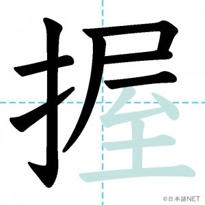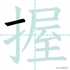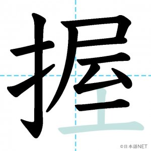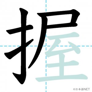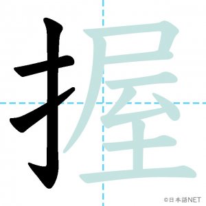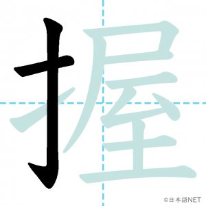 N1 漢字漢字【JLPT N1漢字】「握」の意味・読み方・書き順 2021年9月22日 2021年9月22日 Facebook postはてブLINEPocketFeedlyfa-exclamation-triangle記事内に商品プロモーションが含まれる場合があります目次1 「握」の漢字について2 「握」の書き順3 「握」を含む言葉4 関連書籍「握」の漢字について読み方音読みあく訓読みにぎ-る意味to grip / to hold部首手(扌龵)画数13JLPTレベルN1 「握」の書き順1画目2画目3画目4画目5画目6画目7画目8画目9画目10画目11画目12画目13画目「握」を含む言葉握手(あくしゅ)握る(にぎる)握力(あくりょく)把握(はあく)関連書籍 日本語総まとめ N1 漢字 [英語・ベトナム語版] (「日本語能力試験」対策) Amazon 楽天市場 Yahooショッピング 新完全マスター漢字 日本語能力試験N1 Amazon 楽天市場 Yahooショッピング 日本語を学ぶ外国人のための これで覚える! 漢字字典2500ナツメ社 Amazon 楽天市場 Yahooショッピング Facebook postはてブLINEPocketFeedly