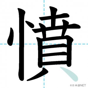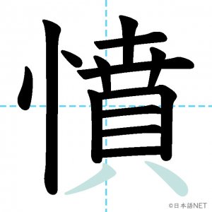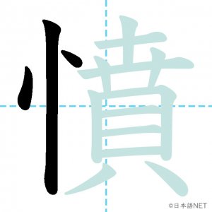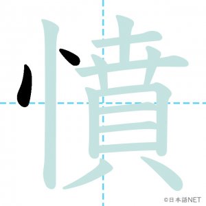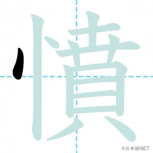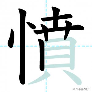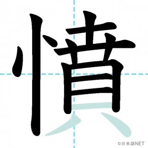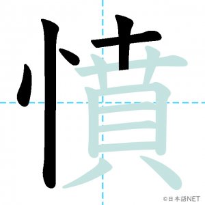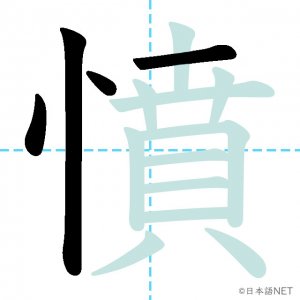 N1 漢字漢字【JLPT N1漢字】「憤」の意味・読み方・書き順 2021年9月29日 2021年9月29日 Facebook postはてブLINEPocketFeedlyfa-exclamation-triangle記事内に商品プロモーションが含まれる場合があります目次1 「憤」の漢字について2 「憤」の書き順3 「憤」を含む言葉4 関連書籍「憤」の漢字について読み方音読みふん訓読みいきどお-る意味aroused / to resent / anger部首心(忄⺗)画数15JLPTレベルN1 「憤」の書き順1画目2画目3画目4画目5画目6画目7画目8画目9画目10画目11画目12画目13画目14画目15画目「憤」を含む言葉憤る(いきどおる)憤慨(ふんがい)関連書籍 日本語総まとめ N1 漢字 [英語・ベトナム語版] (「日本語能力試験」対策) Amazon 楽天市場 Yahooショッピング 新完全マスター漢字 日本語能力試験N1 Amazon 楽天市場 Yahooショッピング 日本語を学ぶ外国人のための これで覚える! 漢字字典2500ナツメ社 Amazon 楽天市場 Yahooショッピング Facebook postはてブLINEPocketFeedly