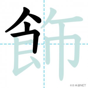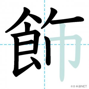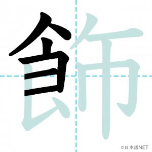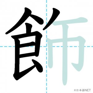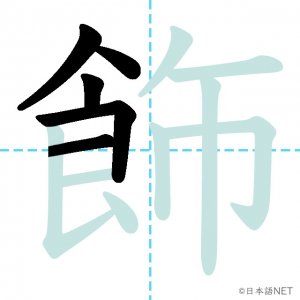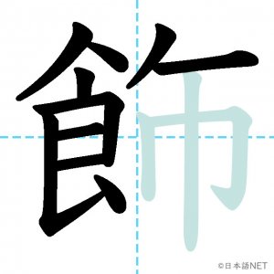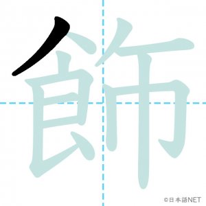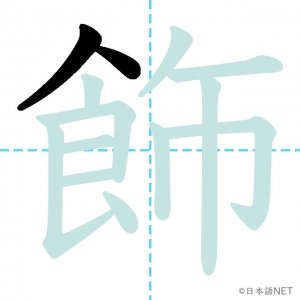N1 漢字漢字【JLPT N1漢字】「飾」の意味・読み方・書き順 2021年9月29日 2021年9月29日 Facebook postはてブLINEPocketFeedlyfa-exclamation-triangle記事内に商品プロモーションが含まれる場合があります目次1 「飾」の漢字について2 「飾」の書き順3 「飾」を含む言葉4 関連書籍「飾」の漢字について読み方音読みしょく訓読みかざ-る意味to decorate部首食画数13JLPTレベルN1 「飾」の書き順1画目2画目3画目4画目5画目6画目7画目8画目9画目10画目11画目12画目13画目「飾」を含む言葉飾る(かざる)着飾る(きかざる)装飾(そうしょく)修飾(しゅうしょく)首飾り(くびかざり)関連書籍 日本語総まとめ N1 漢字 [英語・ベトナム語版] (「日本語能力試験」対策) Amazon 楽天市場 Yahooショッピング 新完全マスター漢字 日本語能力試験N1 Amazon 楽天市場 Yahooショッピング 日本語を学ぶ外国人のための これで覚える! 漢字字典2500ナツメ社 Amazon 楽天市場 Yahooショッピング Facebook postはてブLINEPocketFeedly